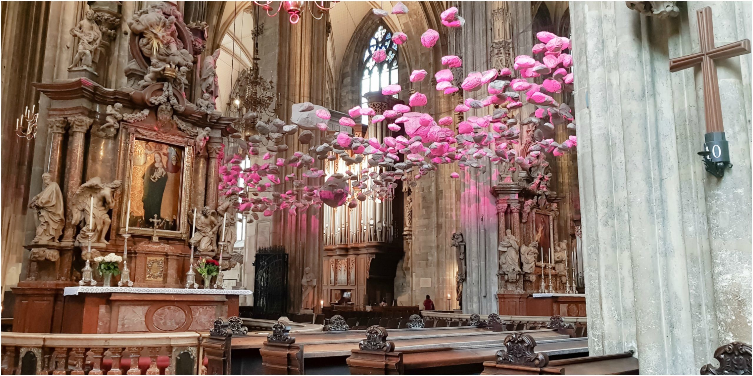 L’église St Charles est célèbre pour sa coupole. Les fresques qui la décorent narrent la gloire de saint Charles Borromée. L’intérieur est tout aussi magnifique. En effet, le marbre rose et les dorures côtoient une oeuvre plus moderne. Celle de Tomas Saraceno et sa nouvelle Installation “Aerocene”.