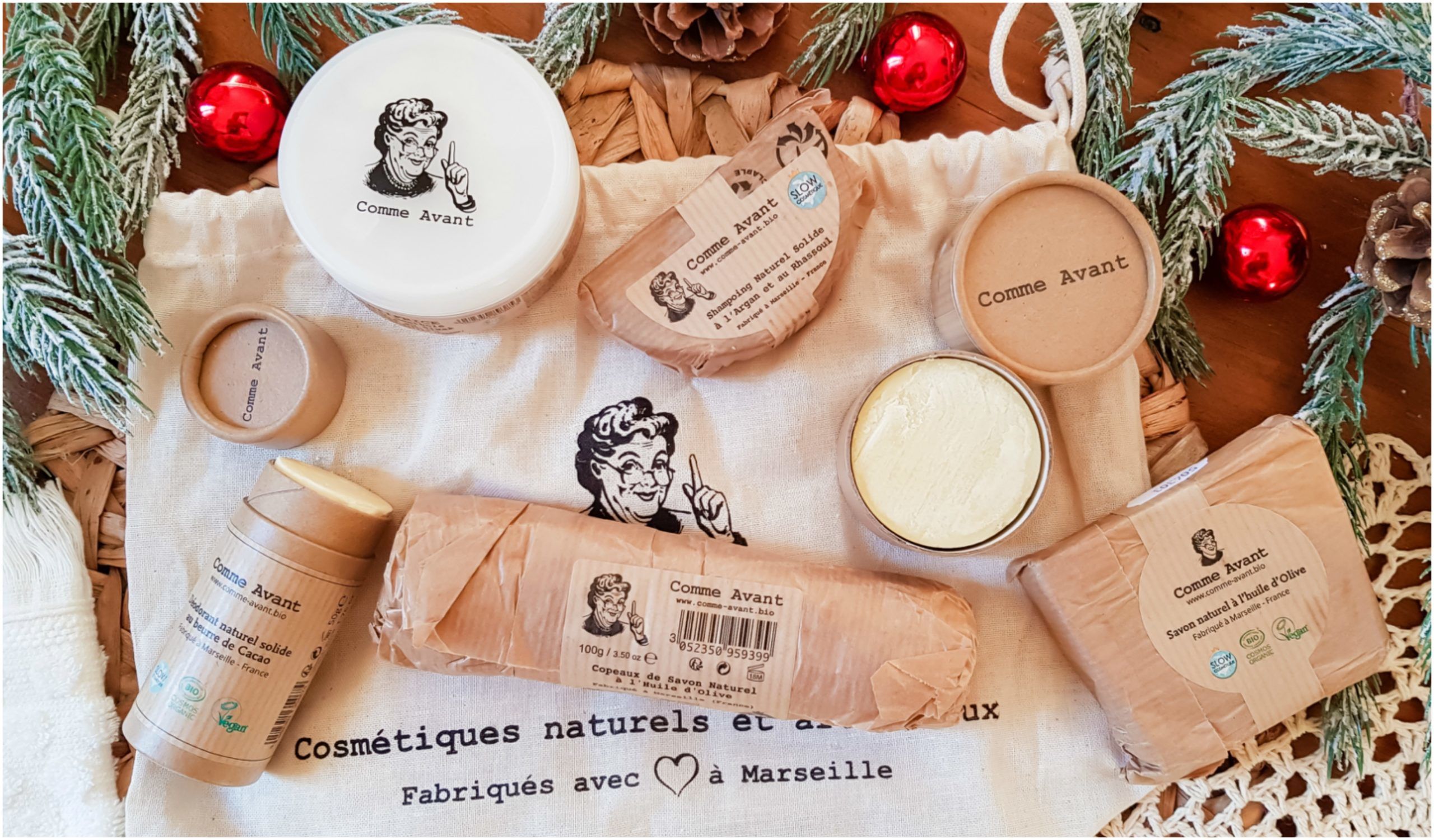 Comme Avant est une marque française qui propose des produits bio, vegan, slow cosmétique et en vrac. Leur atelier de fabrication est situé à Marseille en France. C’est là où ils produisent leurs cosmétiques naturels et artisanaux. Leur idée est de proposer des produits d’Antan. C’est à dire des produits que pouvaient utiliser nos grands parents comme le savon de marseille. Ce sont des produits bio simples et efficaces sans ingrédient nocif pour la santé.