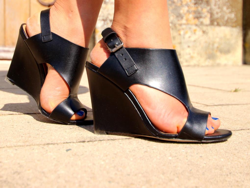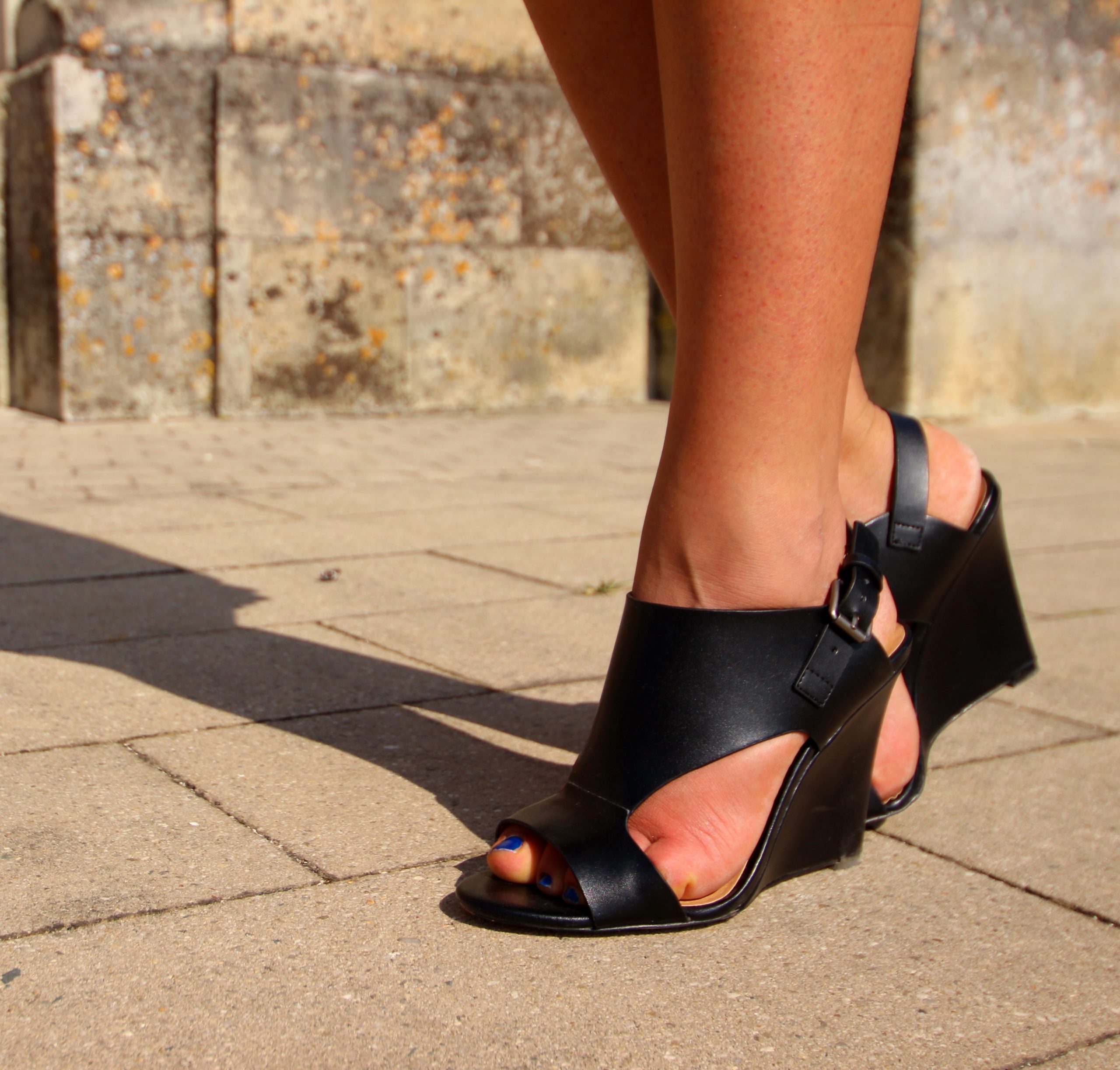 Idéal pour camoufler les rondeurs sans vous faire passer pour une montgolfière, cette robe bleue et orange ravive le teint des peaux mates et donne un sacré coup de fouet à mon look. Le genre de robe qui se suffit à elle-même. Du coup pas d’accessoires mais juste une paire de sandales compensées Just Fab (ma marque chouchou qui fait des petits 36 à prix abordables).