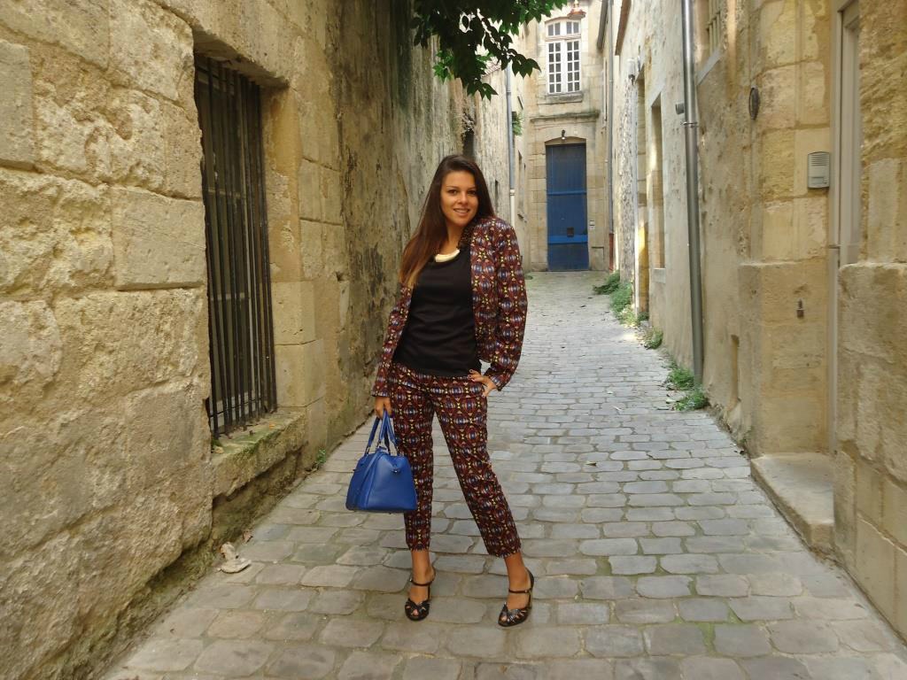 Ça y est, c’est l’Automne… Un Automne aux airs d’été Indien, avec des matinées un peu fraîches mais des après-midi encore très agréables. Et comme le soleil est encore bien présent sur Bordeaux, j’ai choisi de mettre cette tenue sur laquelle j’ai carrément flashé sur le site des 3 Suisses. J’adore les imprimés un peu fou! Et ayant remarqué en feuilletant les magazines types Elle, Grazia, Vogue… que les imprimés graphiques étaient tendances cet saison, j’avais bien l’intention de me trouver une pièce de ce type. Pour le coup c’est une tenue entière (quand on aime on compte pas)!