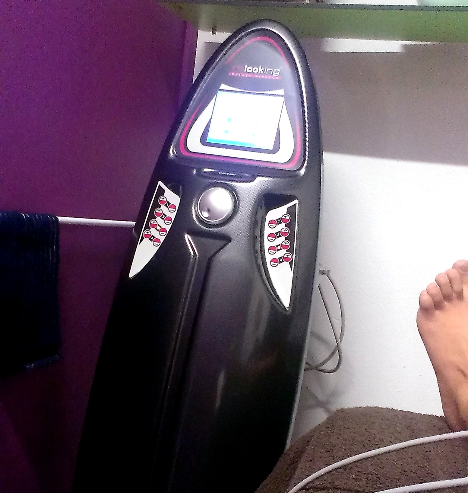 Les petites décharges de cette machine font penser à des micro bulles d’eau hyper puissantes qui font vibrer vos muscles. J’ai trouvé ça assez douloureux au niveau du dessus des cuisses. J’ai eut l’impression que mes muscles étaient aimantés, arrachés. Du coup Delphine a fait en sorte que je reçoive plutôt les décharges sous les cuisses, ce qui était beaucoup plus supportable.