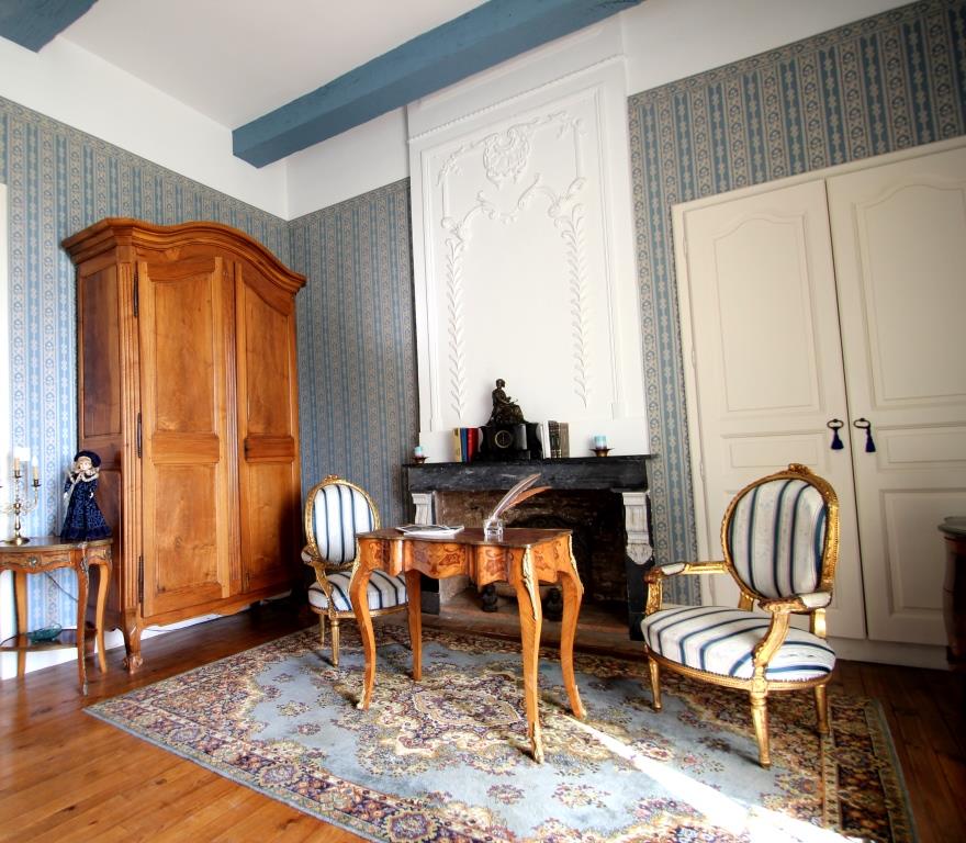 C’est par la grande porte que nous avons pénétré dans la salle principale du château, lieu fort et majestueux qui vous plonge dans une ambiance chevaleresque faite de capes et d’épées. Nous accédons par un grand escalier de pierre au couloir nous menant à notre chambre, celle de Diane d’Andouins, dite « la belle Corisande » et connue pour avoir été maîtresse royale du roi Henri III de Navarre (j’adore faire mon Stéphane Bern).