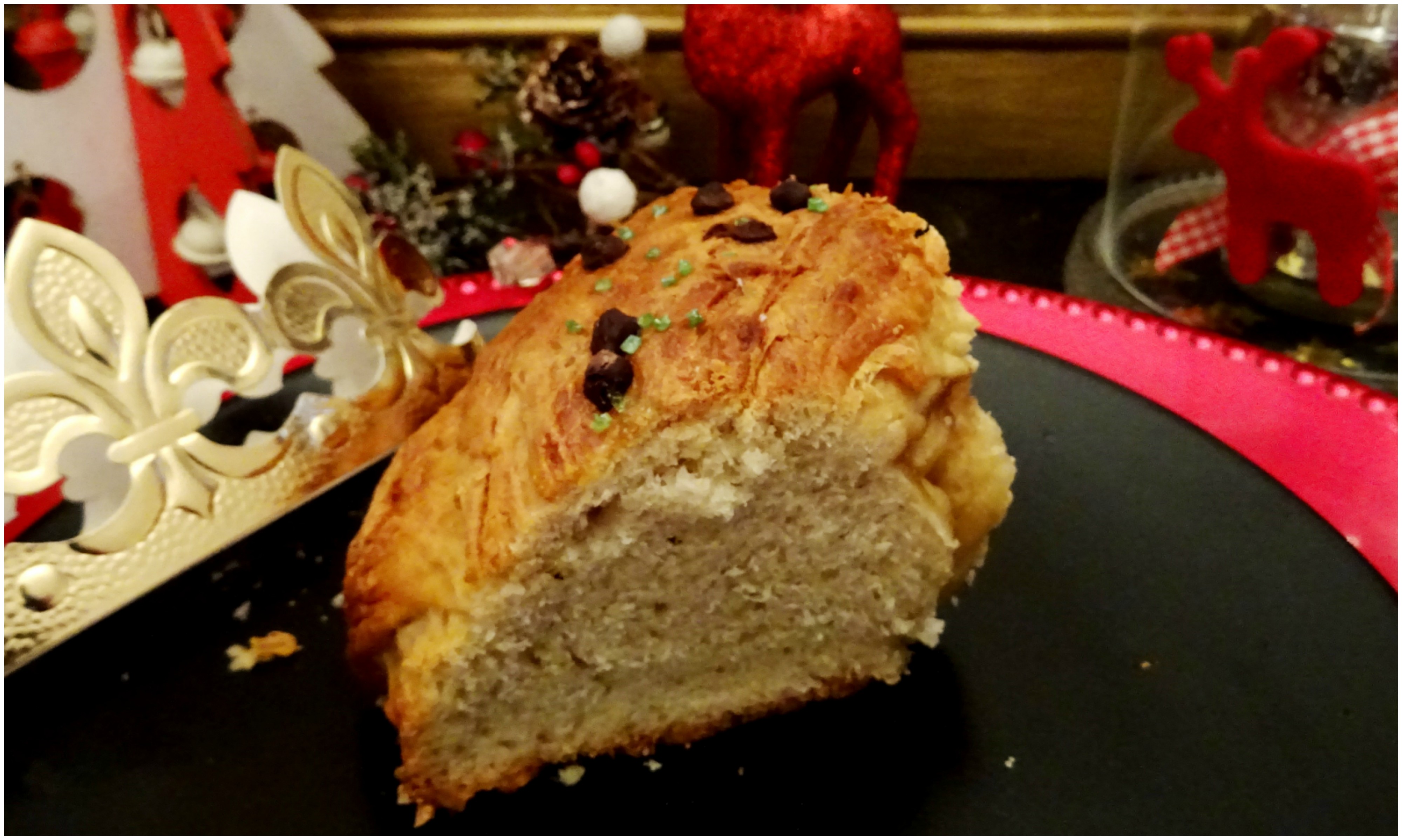 Quel plaisir de pouvoir déguster à nouveau une brioche des rois vegan. Cela fait presque 5 ans que je n’avais pas croqué dans une bonne part de galette des rois façon brioche. Un vrai délice! Alors ok, il faut quand même prévoir la journée pour réaliser cette recette vu qu’il y a pas mal d’étape et de temps de repos. Certaines recettes préconisent même de laisser reposer la pâte une nuit entière. Perso, j’ai fait deux galettes récemment, et la deuxième fois j’ai plutôt opté pour 2 fois 3h30. La pâte avait encore plus gonflé que la première fois. En effet, sachez que plus elle reposera, plus elle gonflera. Reste qu’à doser la fleur d’oranger et la vanille selon vos goûts, ou d’ajouter des fruits confits plutôt que des pépites de chocolat.