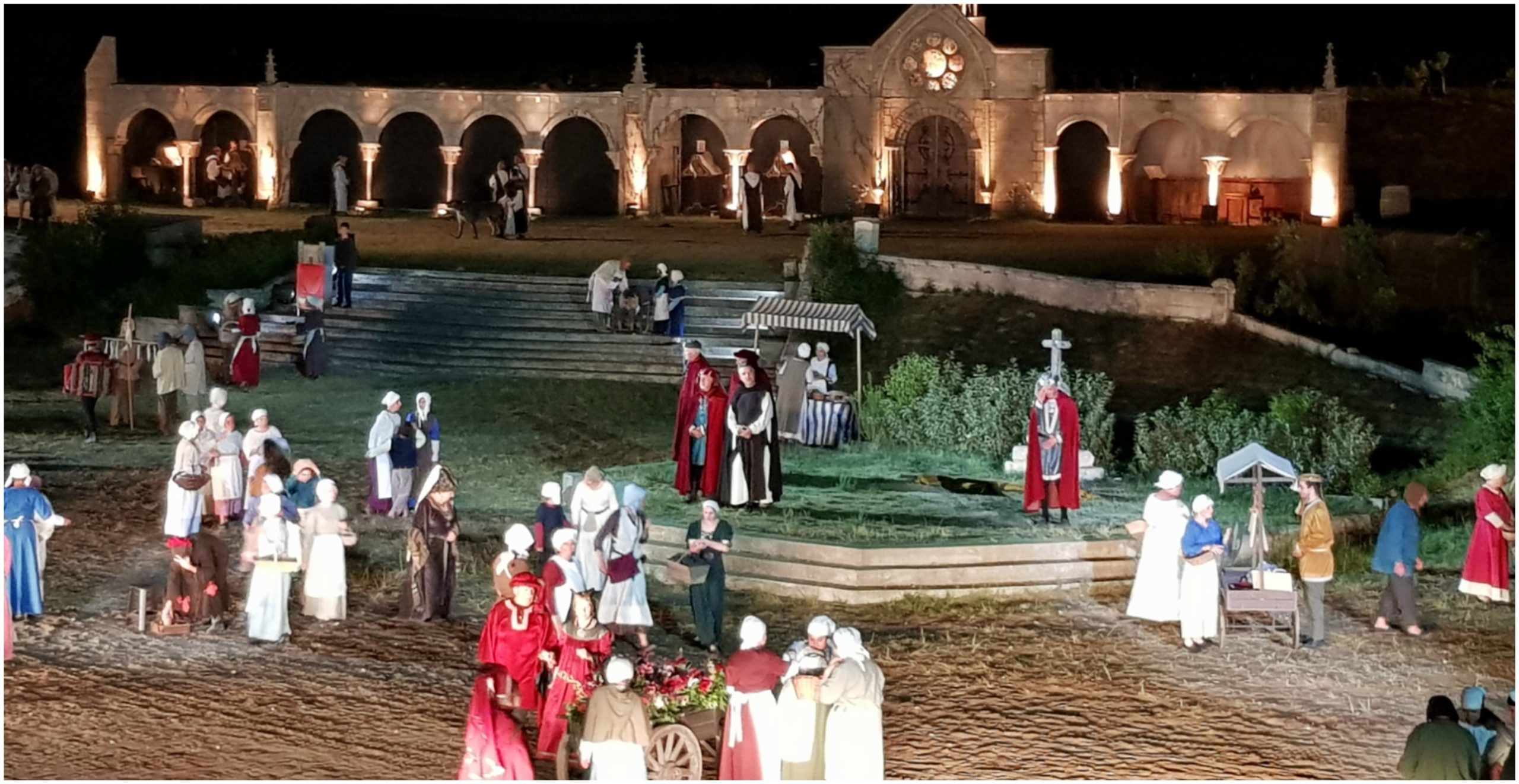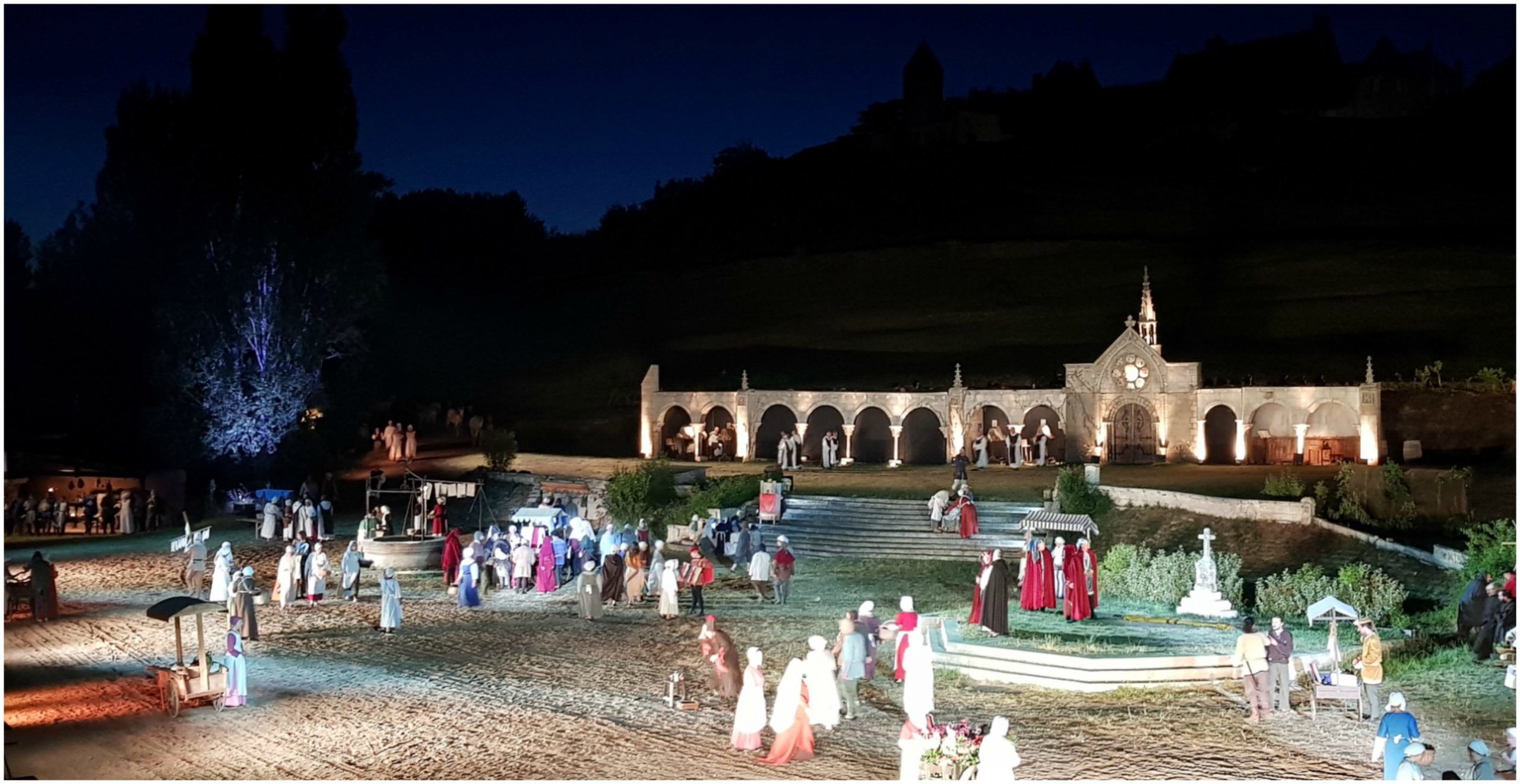 Nous avons beaucoup aimé ce spectacle. Dés le début on à l’impression de faire un retour dans le temps et partager la vie d’un village du Moyen-Âge. Nous avons adoré les scènes de vie quotidienne. Surtout les chevauchées endiablés des chevaliers. Mais également les conteurs qui narrent histoires et anecdotes à la foule. D’autre part, nous avons redécouvert une période clé de l’Histoire de France et du Moyen-Âge en Aquitaine. Région ayant tout de même appartenu aux Anglais pendant 3 siècles. Enfin, le final de la Bataille de Castillon est tout simplement somptueux. Aussi nous gardons un très bon souvenir de ce spectacle en plein air qui plaira aux petits comme aux grands.