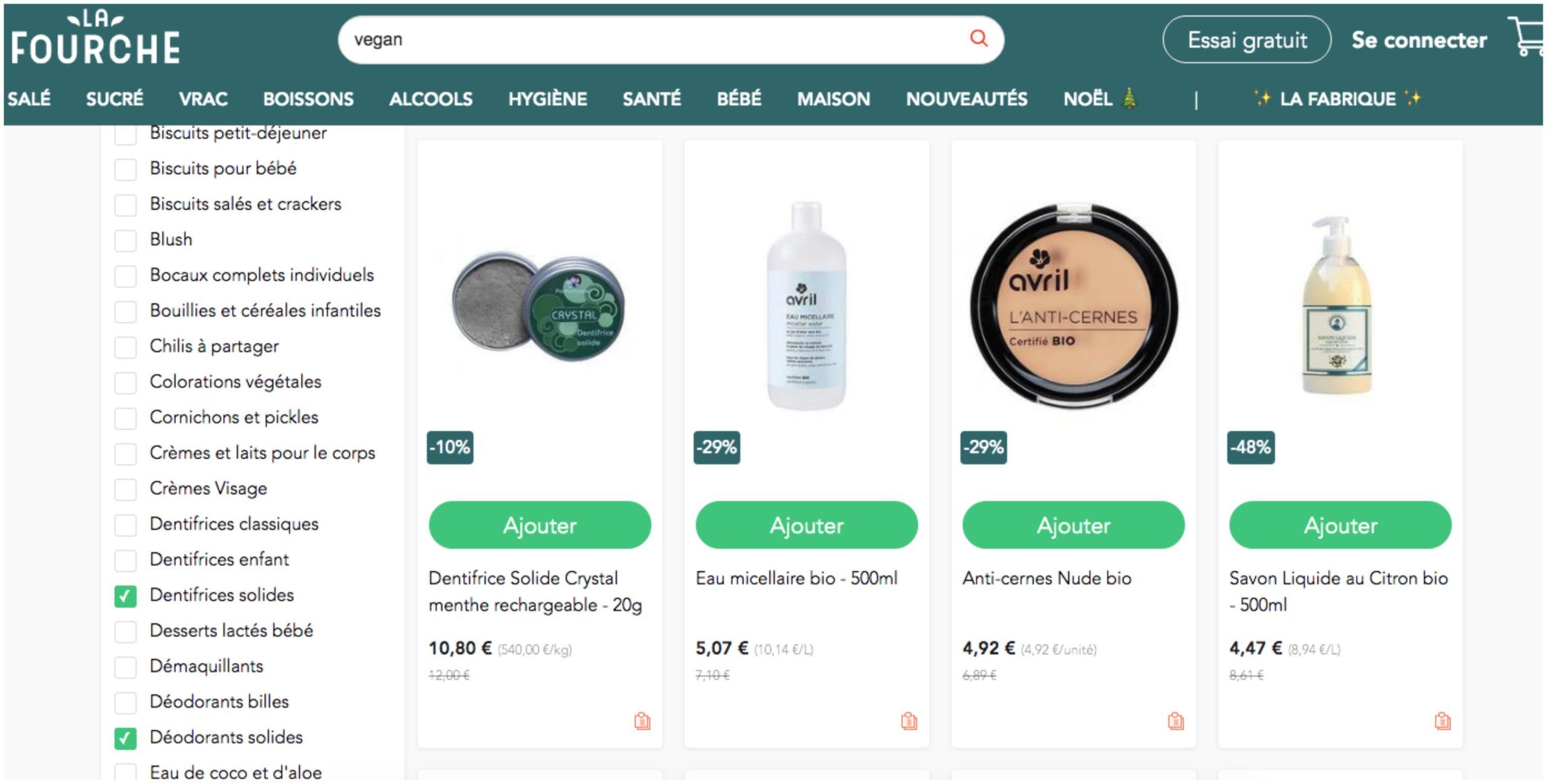 La Fourche Bio est un magasin bio en ligne qui propose tel une épicerie des produits bio salés, sucrés et en vrac. On peut également trouver sur leur site des produits de beauté bio ainsi que des produits ménagers aux ingrédients naturels. D’autre part, La Fourche Bio favorise les producteurs locaux ainsi que les produits sans huile de palme, sans OGM, peu transformés, qui génèrent peu de déchets et donc ont une faible empreinte carbone. En effet, parmi les 3000 produits que propose ce magasin bio en ligne, beaucoup sont dans des contenants en verre ou zéro déchet.