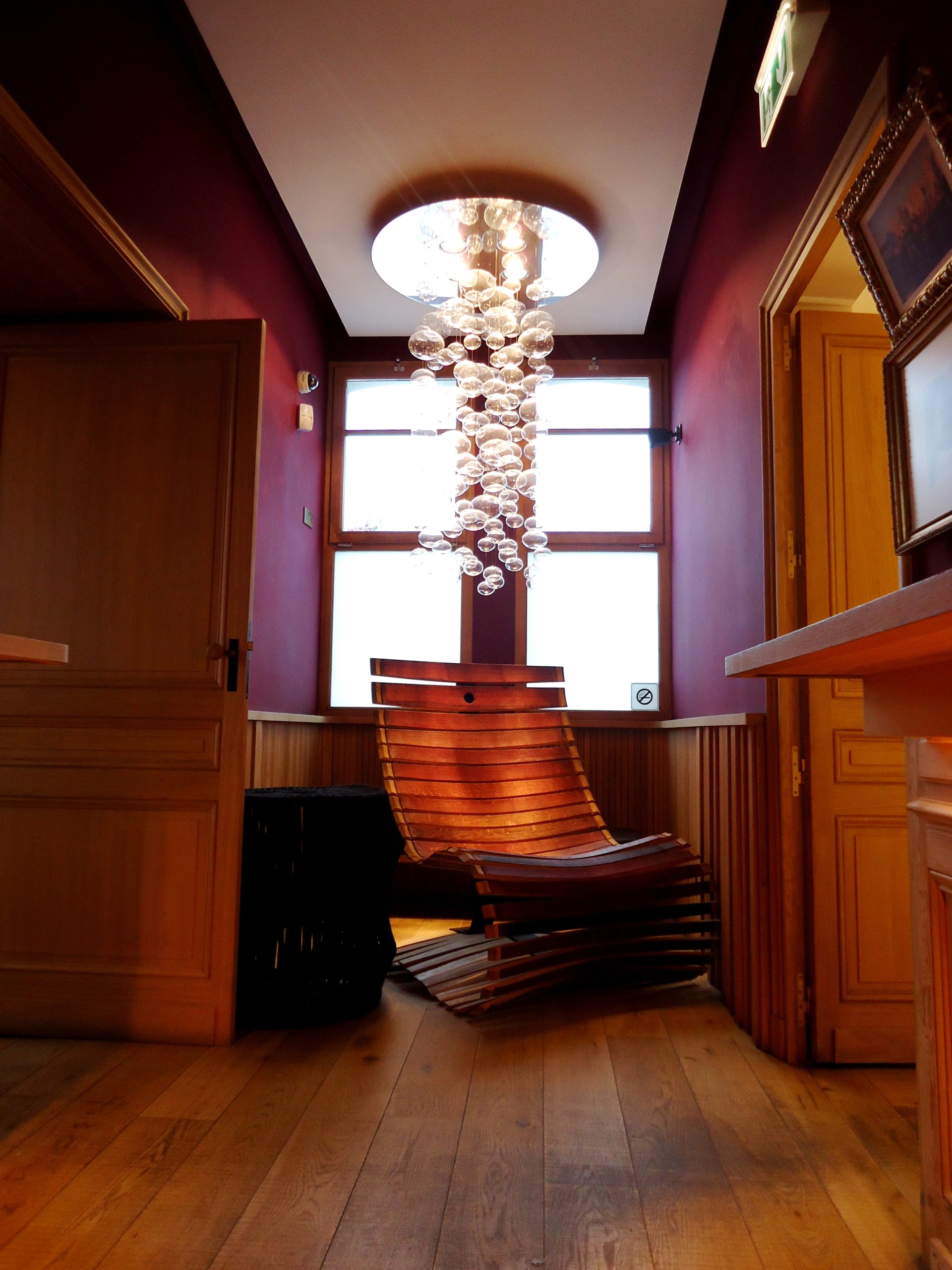 Ce qui nous a fait rester? Le cadre. Surtout et avant tout. On a l’impression d’être à la maison sous cette véranda en bord de mer, lovés dans les coussins des banquettes. L’intérieur est tout aussi fabuleux, avec un long corridor décoré de cadres et de tableaux, au fond du quelle se trouve un fauteuil design en bois, surplombé d’un lustres ‘bulle de savon’ (regardez les photos et vous comprendrez). La décoration est soignée, personnalisée, délicate, comme la carte proposée.