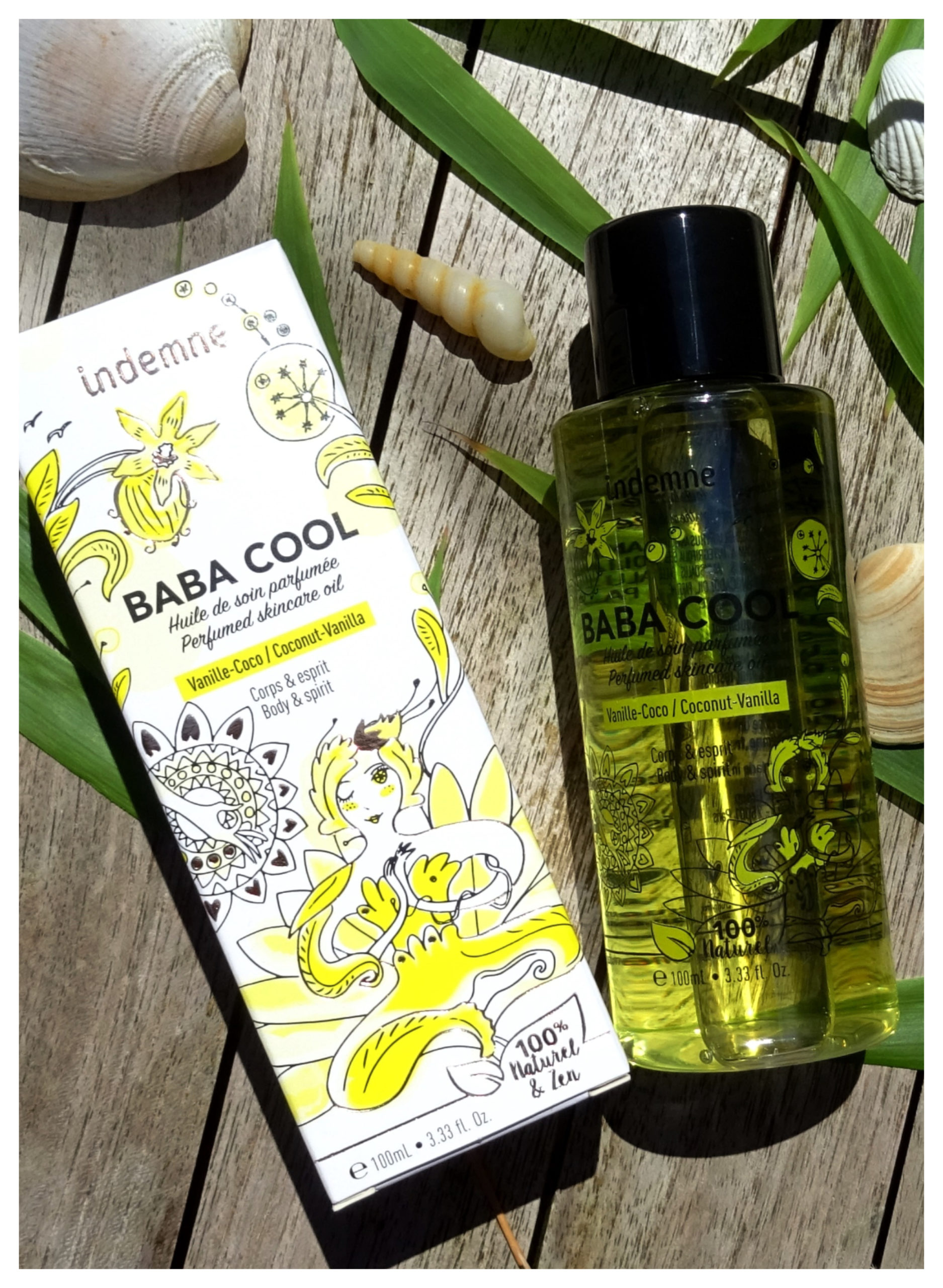 J’adore l’odeur vanille coco de l’huile baba cool d’Indemne 🙂 Cette marque a vraiment de chouettes produits