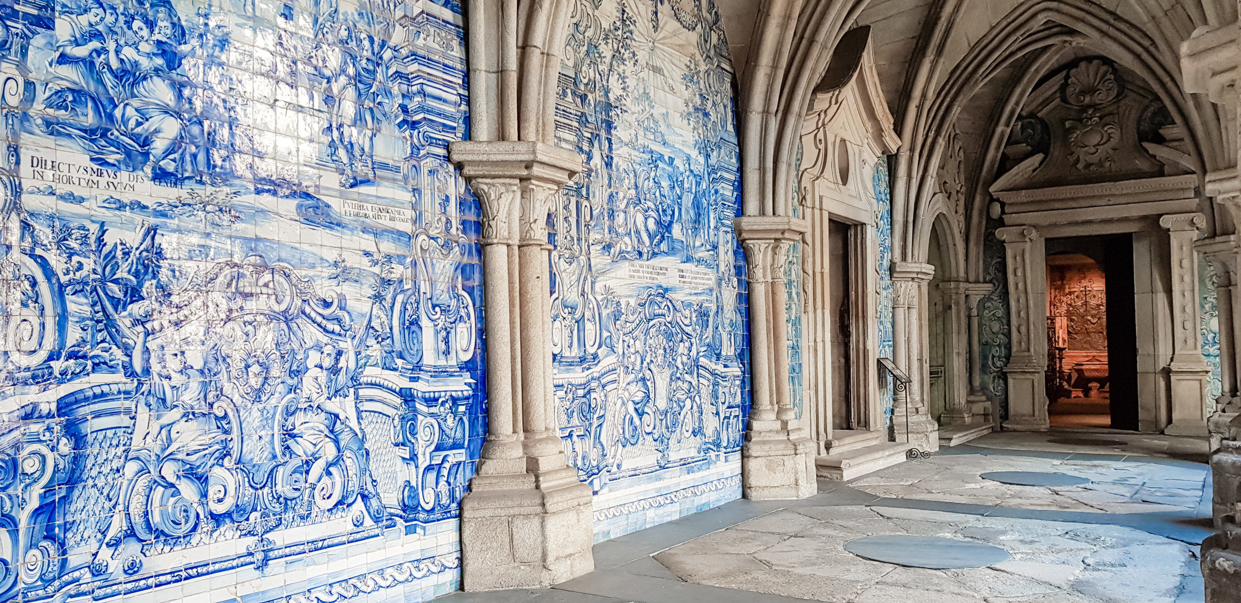 Je vous emmène maintenant visiter Porto et sa cathédrale qui est située dans le quartier de Batalha, non loin des murailles qui protégeaient autrefois la ville. L’extérieur de l’édifice en lui même est impressionant. D’ailleurs cette cathédrale ressemble davantage à une forteresse avec ses créneaux qu’à un édifice religieux. Cependant, le vrai trésor de notre visite se trouve une fois de plus à l’intérieur. Et c’est le cloître. En effet, ce cloître du 14 éme siècle est orné de belles mosaïques bleues appelées “azulejos”. Ces dernières représentent des scènes religieuses sur les murs du rez de chaussée et de l’étage. D’autre part, en visitant le cloître, vous pourrez découvrir la Casa do Cabildo où on peut admirer le trésor de la cathédrale. C’est une collection d’objets d’orfèvrerie religieuse d’une grande beauté.